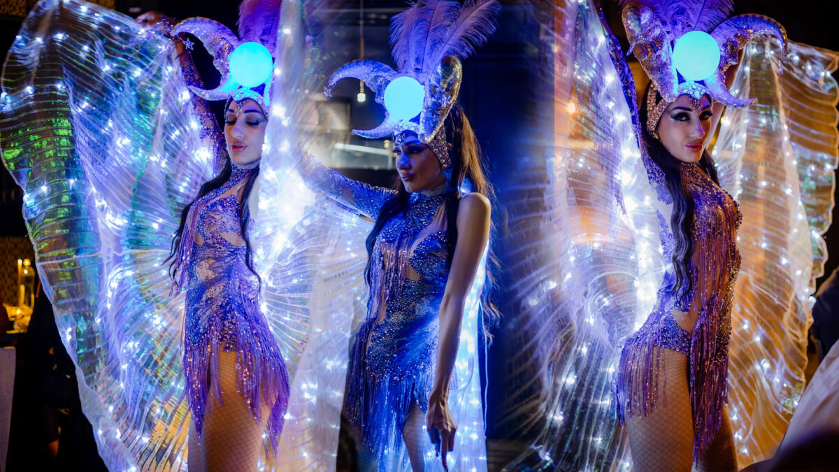 Le performance LED uniscono danza, ritmo e tecnologia: la ballerina si esibisce con costumi luminosi, bastoni e ventagli LED, creando giochi di luce sincronizzati con la musica.