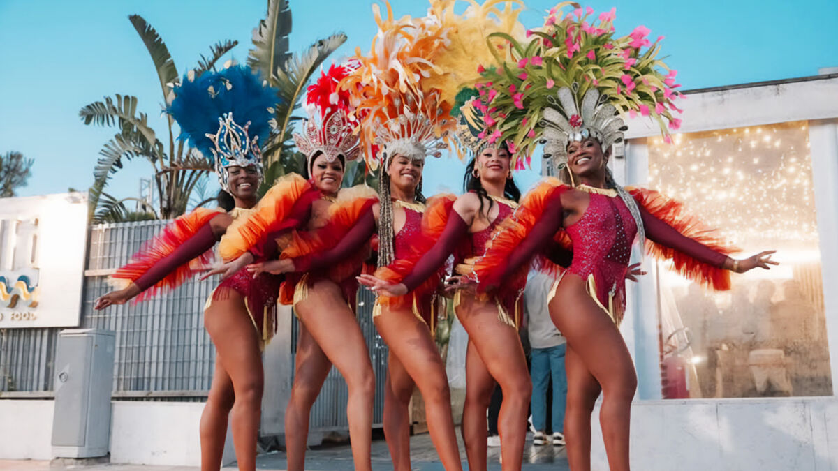 Lo show include samba, axé, danze folkloristiche, animazione itinerante e momenti interattivi pensati per coinvolgere spettatori di tutte le età. La formazione può essere modulata in base al tipo di evento: da un piccolo gruppo di ballerine fino a una grande compagnia con musicisti, percussionisti e performer di capoeira. Il risultato è sempre uno spettacolo scenografico, adatto a piazze, lungomare, palchi, locali e location private.