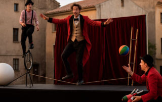Spettacolo circo teatro di strada itinerante su palco Sardegna