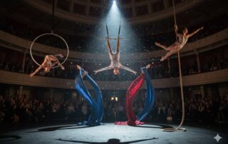 Spettacolo di danza aerea acrobatica con trapezio, cerchio, corda e tessuto Emilia-Romagna