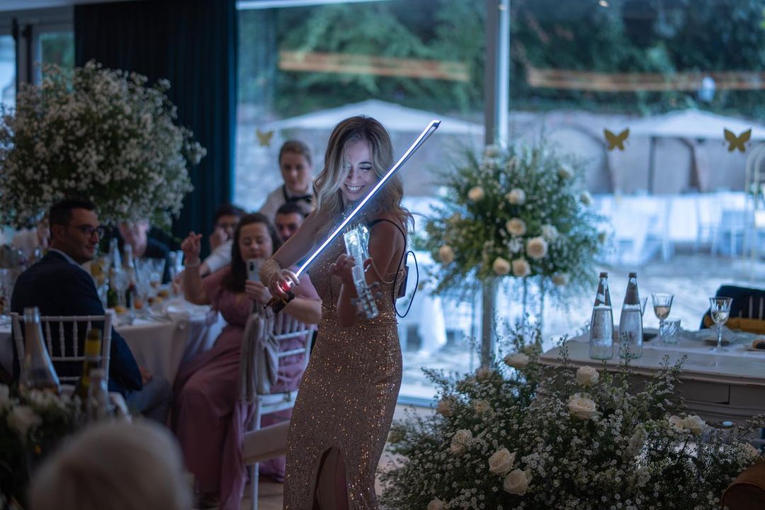Un effetto visivo e musicale di grande impatto, ideale per serate di gala, tagli torta o eventi serali esclusivi.