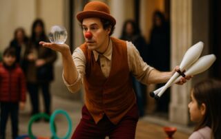 Spettacolo clown con contact juggling e laboratorio di giocoleria Lombardia