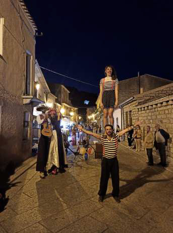 Con la presenza aggiuntiva di un trampoliere, lo spettacolo diventa ancora più visibile e spettacolare, ideale per creare atmosfera nelle aree più affollate.