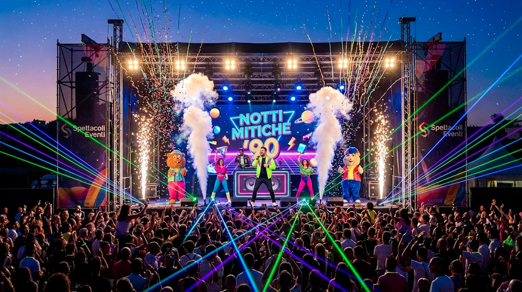 Se stai cercando uno spettacolo capace di trasformare il tuo evento in una grande festa, Notti Mitiche ’90 è il format ideale. Un progetto esclusivo firmato dalla nostra agenzia Spettacoli Eventi, pensato per riportare sul palco l’energia, la musica e l’atmosfera indimenticabile degli anni ’90.