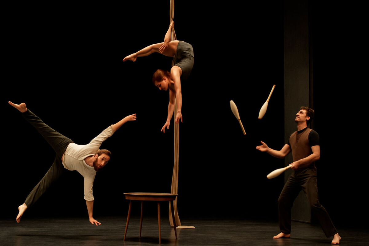 Lo spettacolo unisce discipline acrobatiche, danza, teatro gestuale e manipolazione di oggetti, creando un flusso continuo di immagini che catturano lo sguardo e l’emozione dello spettatore. Gli artisti portano in scena numeri di: