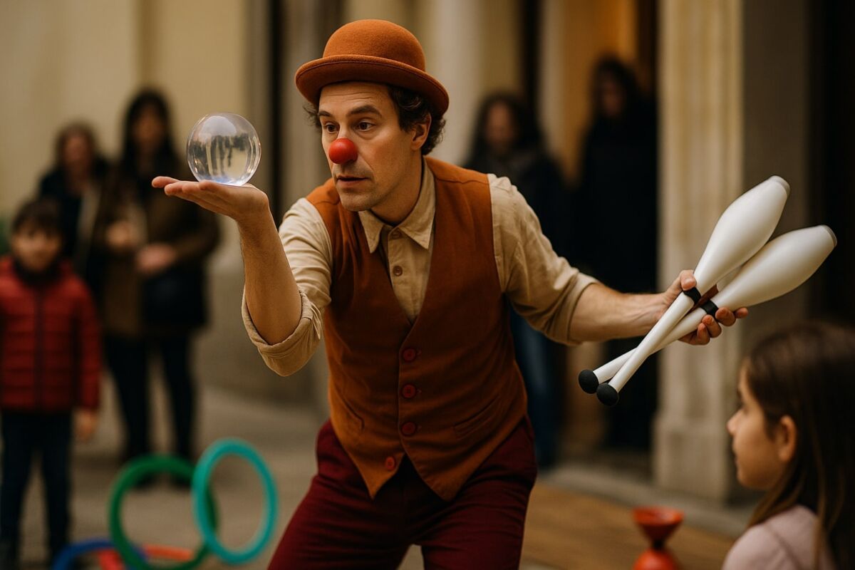 Un connubio perfetto tra arte, divertimento e stupore: lo spettacolo clown con contact juggling e laboratorio di giocoleria è un’esperienza capace di affascinare adulti e bambini, grazie a un mix di comicità, abilità tecniche e magia visiva.