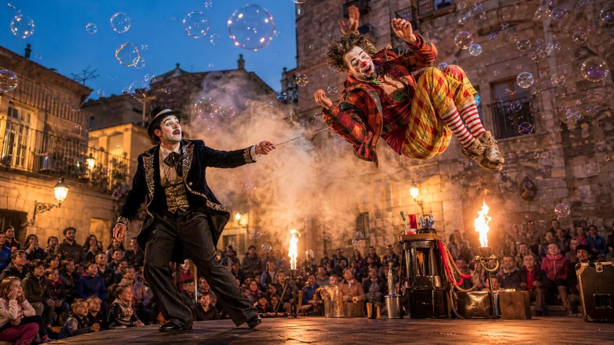 Lo spettacolo clown teatrale acrobatico in Sardegna è una proposta originale, coinvolgente e ricca di ritmo, pensata per trasformare ogni evento in un momento di divertimento, stupore e partecipazione. Non si tratta del classico spettacolo di clown, ma di una vera performance teatrale e circense, capace di unire comicità, acrobatica, interazione con il pubblico e suggestioni visive adatte a spettatori di tutte le età.
