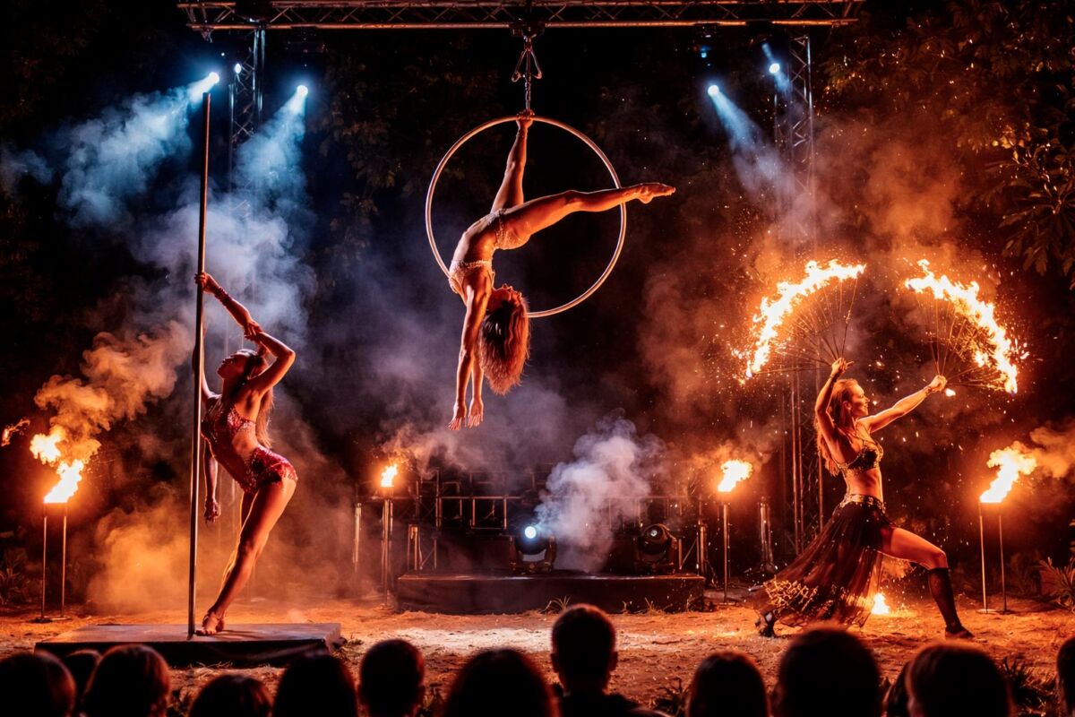 Se stai cercando uno spettacolo capace di sorprendere, emozionare e lasciare un ricordo indelebile, lo spettacolo con cerchio aereo, pole dance e fuoco è la proposta ideale per il tuo evento nelle Marche. Una performance intensa e raffinata che unisce arte circense, danza acrobatica e giochi di fuoco, creando un’esperienza visiva di grande impatto per qualsiasi tipo di pubblico.