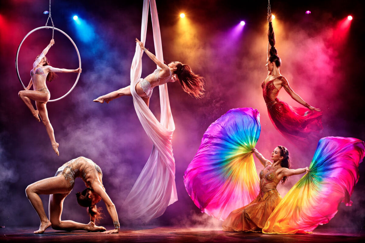 Lo spettacolo unisce discipline circensi di alto livello in una performance fluida e coinvolgente, capace di adattarsi a contesti diversi, sia al chiuso che all’aperto, mantenendo sempre un forte impatto scenico.
