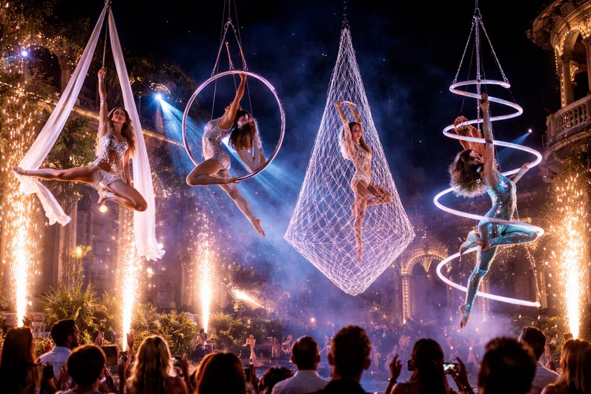 Suggestivo, elegante e altamente scenografico, lo spettacolo di danza aerea con tessuto, cerchio, rete e spirale rappresenta una delle forme di intrattenimento più affascinanti e coinvolgenti per eventi in Campania. Un’esibizione che unisce arte, forza, armonia e spettacolarità, capace di lasciare il pubblico senza fiato.
