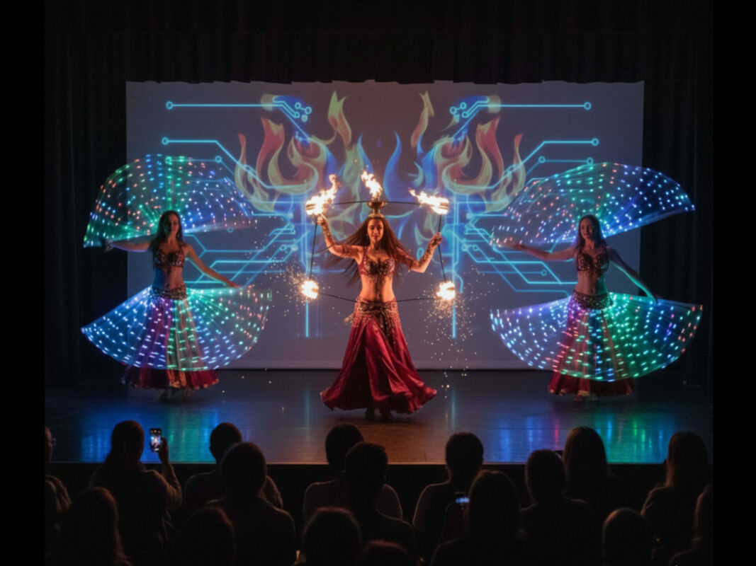 Danza del ventre con fuoco e led: uno show che incanta e sorprende