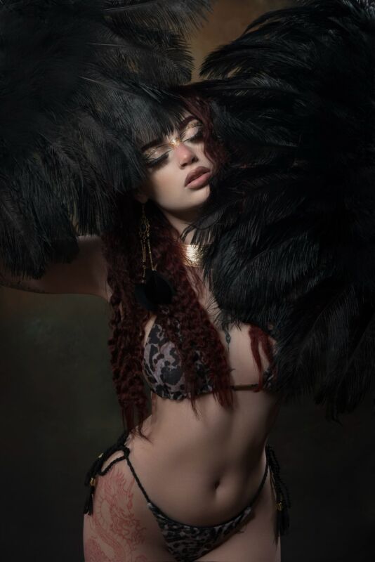 Le coreografie con ventagli di piume creano un effetto visivo elegante e sofisticato, con movimenti sinuosi e giochi di vedo-non-vedo che rendono lo spettacolo coinvolgente ma sempre di classe.