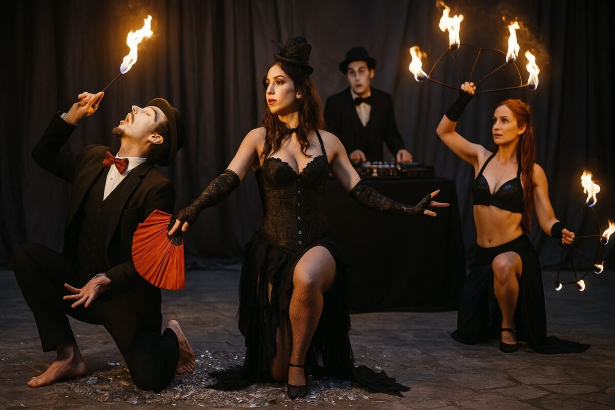 Un’esperienza intensa, sensuale, ironica e affascinante: lo spettacolo di Dark Burlesque, Fachirismo, Mangiafuoco, Flow Art e Mimo Cabaret proposto da Spettacoli Eventi è un viaggio tra arte performativa, fuoco, musica e poesia visiva. Un mix esplosivo che cattura lo sguardo, coinvolge il pubblico e lascia senza fiato.