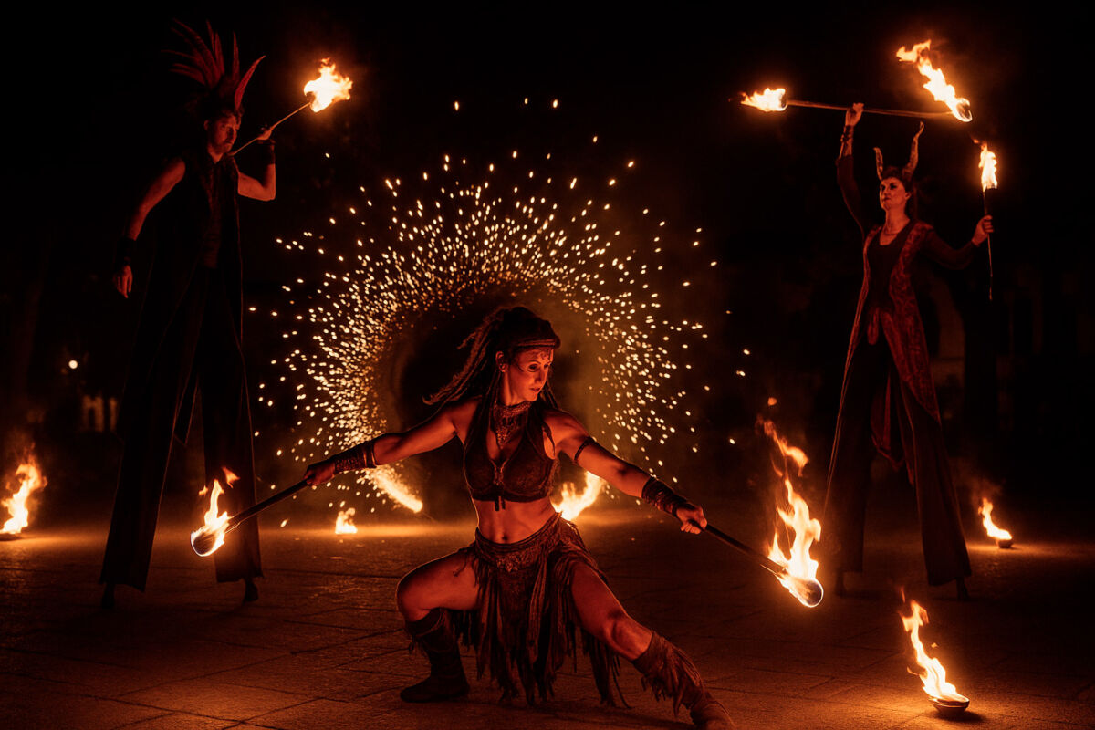 Quando il fascino ancestrale del fuoco incontra l’energia della danza tribale e l’impatto scenico dei trampolieri, nasce uno spettacolo capace di catturare l’attenzione e lasciare un ricordo indelebile. Il nostro spettacolo di fuoco con danza tribale e animazione su trampoli è pensato per trasformare qualsiasi evento in un’esperienza intensa, suggestiva e coinvolgente.