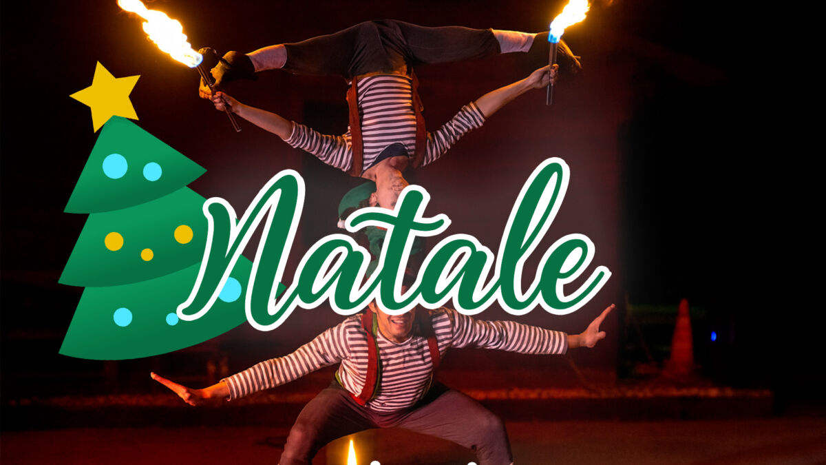 Immagina due artisti acrobati vestiti da elfi che danzano tra le fiamme, le scintille e la magia del Natale.
