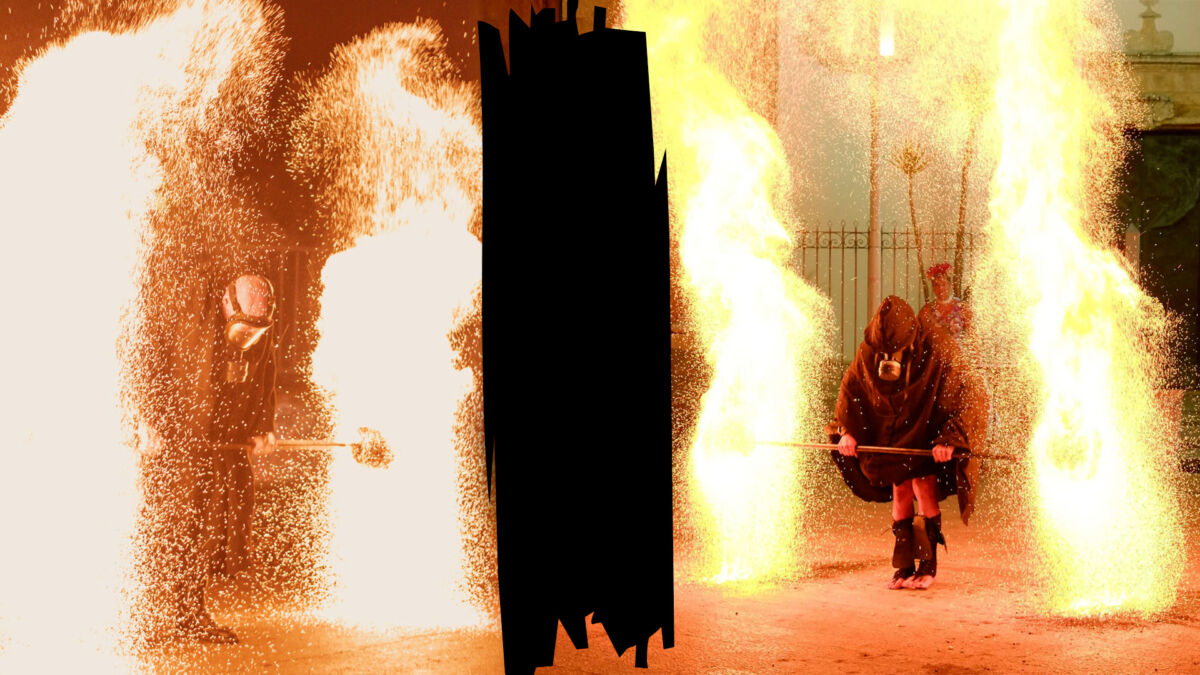 Gli artisti, vestiti con costumi scenografici, portano con sé torce, ventagli di fiamme, bastoni e strumenti specifici, creando micro-performance durante il percorso. Il risultato è un viaggio emozionante che accompagna lo spettatore in un’esperienza vibrante e sempre sorprendente.