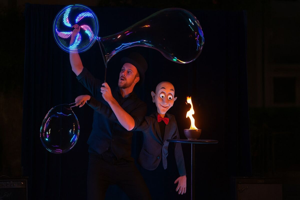 Lo spettacolo di magia con fuoco e led, bolle di sapone e giocoleria è un’esibizione straordinaria che unisce più arti sceniche in un’unica performance coinvolgente e spettacolare. È pensato per stupire, emozionare e far sognare il pubblico di tutte le età, fondendo in modo armonioso magia, fuoco, luci e fantasia.