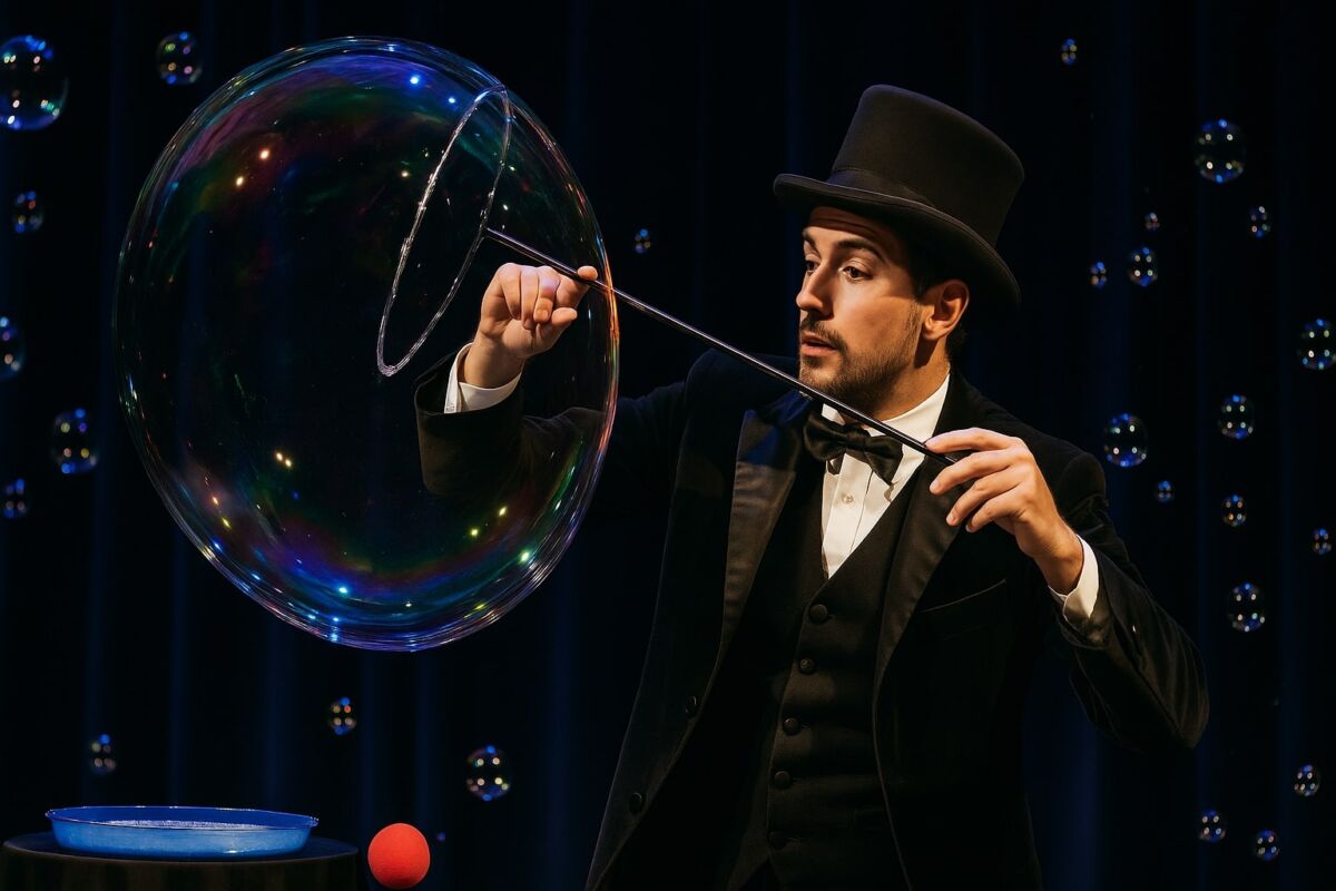 Un’esperienza unica, poetica e sorprendente: lo spettacolo di magia da scena e close up con bolle di sapone è un viaggio tra l’illusione e la meraviglia, pensato per incantare pubblici di ogni età. In un perfetto equilibrio tra arte visiva, magia e intrattenimento, questo show trasforma ogni evento in un momento indimenticabile.