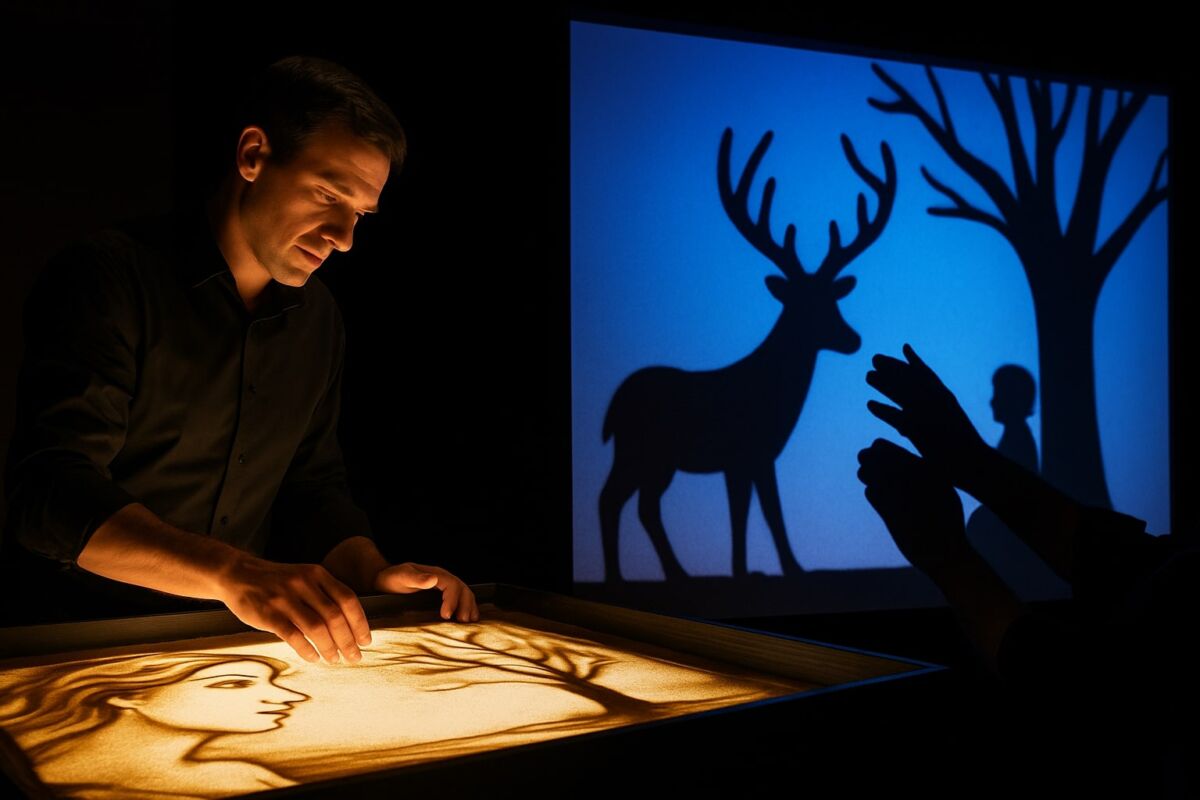 Lo Spettacolo di Sand Art e Ombre Cinesi Abruzzo è un viaggio poetico, raffinato e profondamente emozionante. Una performance capace di affascinare adulti e bambini attraverso immagini che prendono vita davanti agli occhi del pubblico, trasformando granelli di sabbia e sagome luminose in storie suggestive, atmosfere magiche e quadri in movimento.