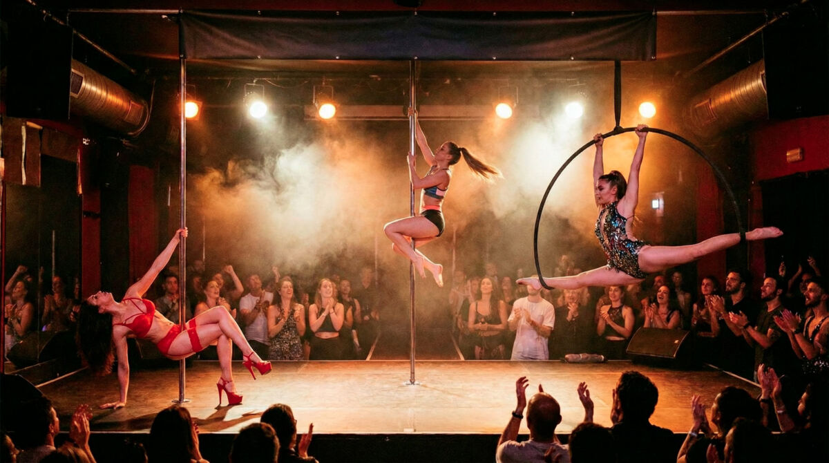 Scegliere lo spettacolo di exotic pole dance, pole dance e cerchio aereo significa puntare su: