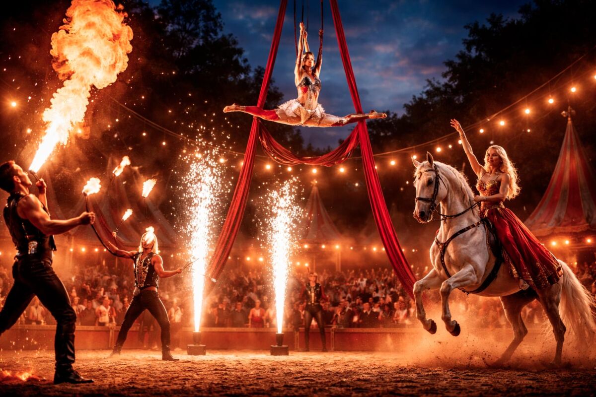 Quando si cerca uno spettacolo capace di stupire, emozionare e coinvolgere il pubblico di tutte le età, la combinazione tra giocoleria, fuoco, acrobatica aerea e show equestre rappresenta una scelta di grande impatto scenico. Questo format unisce eleganza, adrenalina e poesia visiva in un’unica performance, studiata per lasciare un ricordo indelebile.