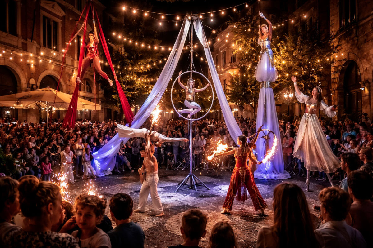 Scegliere uno show di giocoleria, trampoli e danza aerea significa puntare su un intrattenimento completo, capace di sorprendere e coinvolgere.