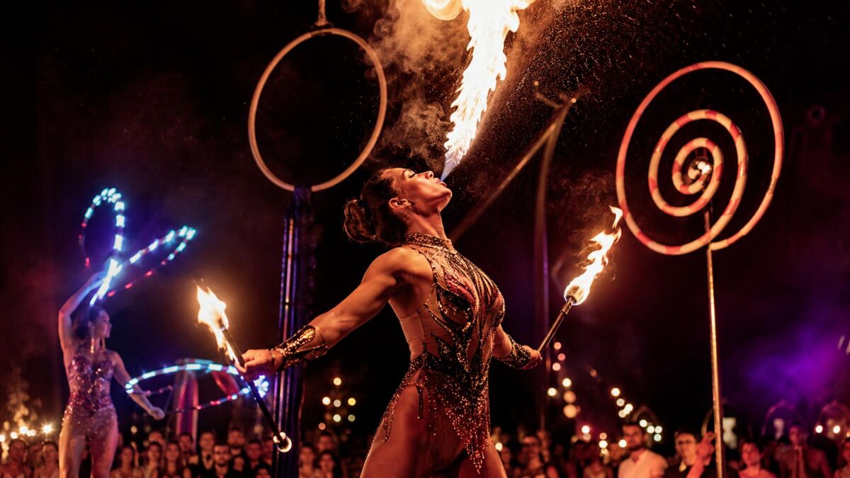 La performance unisce la forza primordiale del fuoco alla grazia della danza, creando un’atmosfera magnetica, raffinata e sorprendente. Ogni elemento dello show è studiato per catturare l’attenzione degli ospiti: le fiamme creano stupore, la giocoleria led dona ritmo e colore, mentre le evoluzioni su cerchio aereo e lollypop aggiungono un tocco acrobatico elegante e spettacolare.