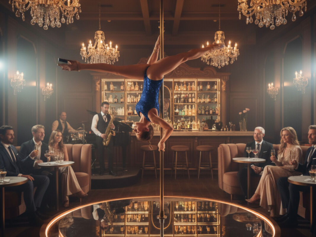 alto impatto visivo: il palo volante e la pole dance creano un effetto scenico straordinario, capace di catturare l’attenzione fin dal primo istante