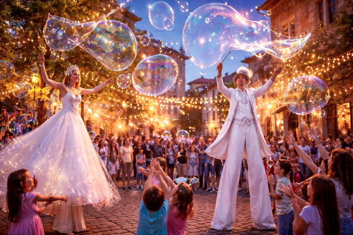 C’è qualcosa di profondamente magico nell’incontro tra l’eleganza dei trampoli e la leggerezza delle bolle di sapone. Uno spettacolo itinerante capace di catturare lo sguardo, emozionare grandi e piccoli e trasformare qualsiasi evento in un’esperienza indimenticabile. Lo spettacolo trampoli itineranti con bolle di sapone è una proposta artistica coinvolgente, visiva e dinamica, perfetta per animare spazi aperti e contesti in movimento.
