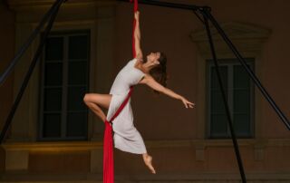 Spettacolo danza aerea con cerchio, tessuti, rete, amaca, luna e palo Liguria